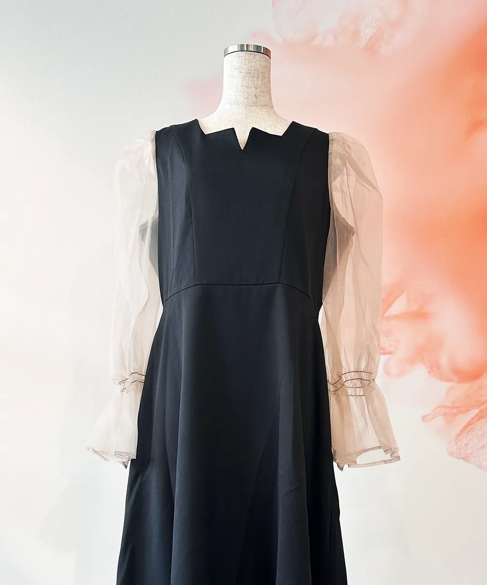 RUIRUE BOUTIQUE(ルイルエブティック)の黒のパーティドレスです。サイズ:2L色:黒 商品番号:10060