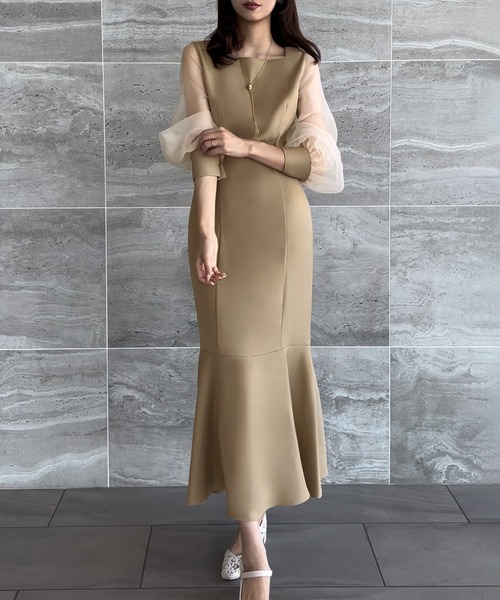 ノーブランドのベージュのパーティドレスです。サイズ:2L色:ベージュ 商品番号:10101