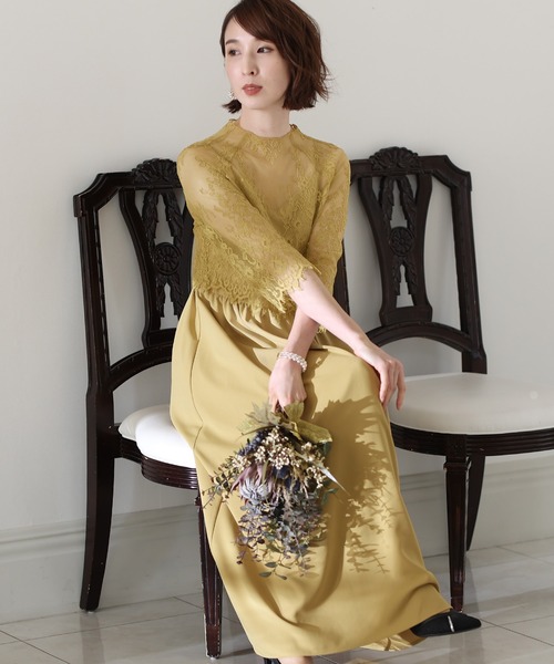 PourVous(プールヴー)の黄色のパーティドレスです。サイズ:M /F色:黄色 商品番号:10121